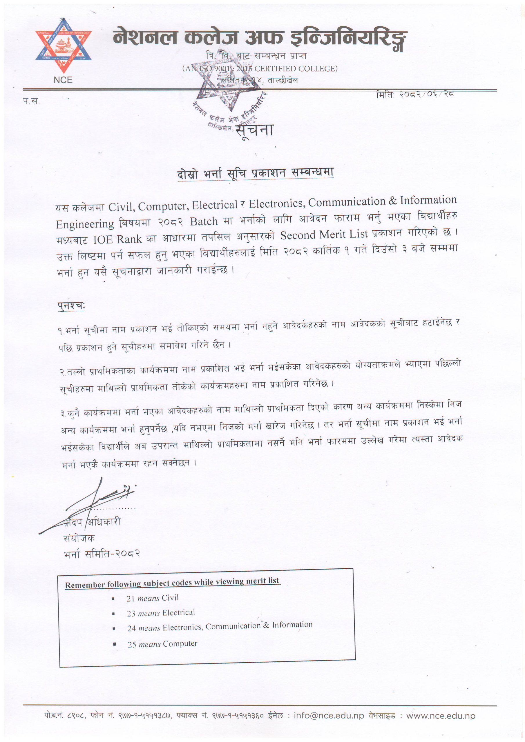 - NCE stipend of worth Rs. 4,00,000 will be awarded to 1 student from each programs for 2081 intake. For details: NCE Stipend for Meritorious Students: Effective for 2081 Intake – National College Of Engineering